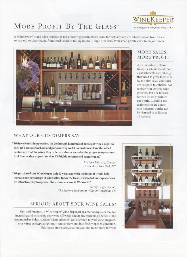 - Der Winekeeper ist für den Ausschank Wein per Glas unerlässlich.